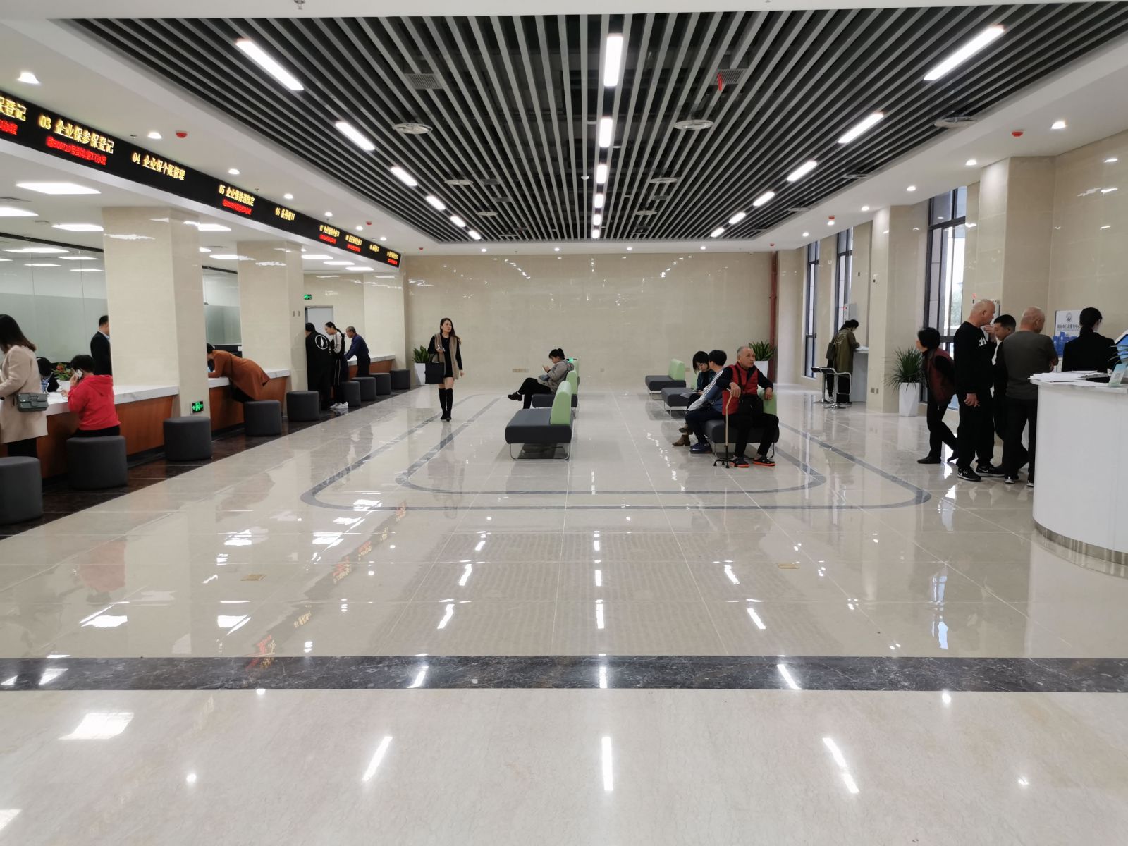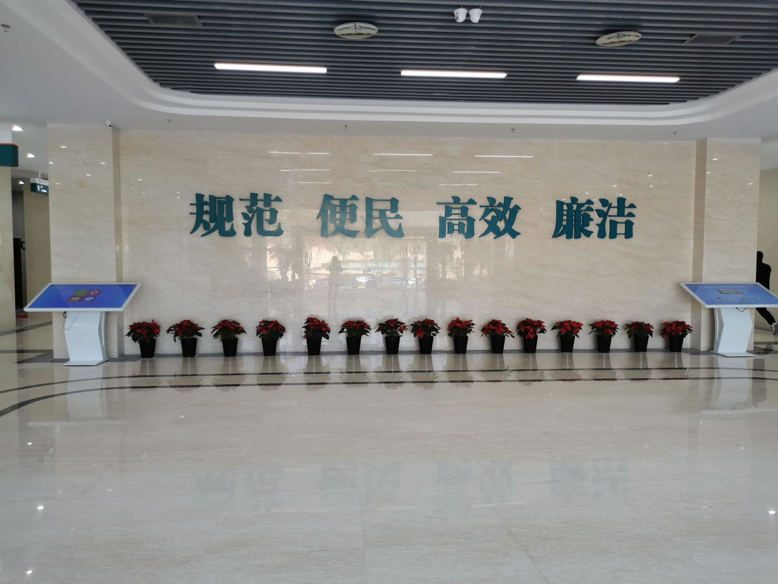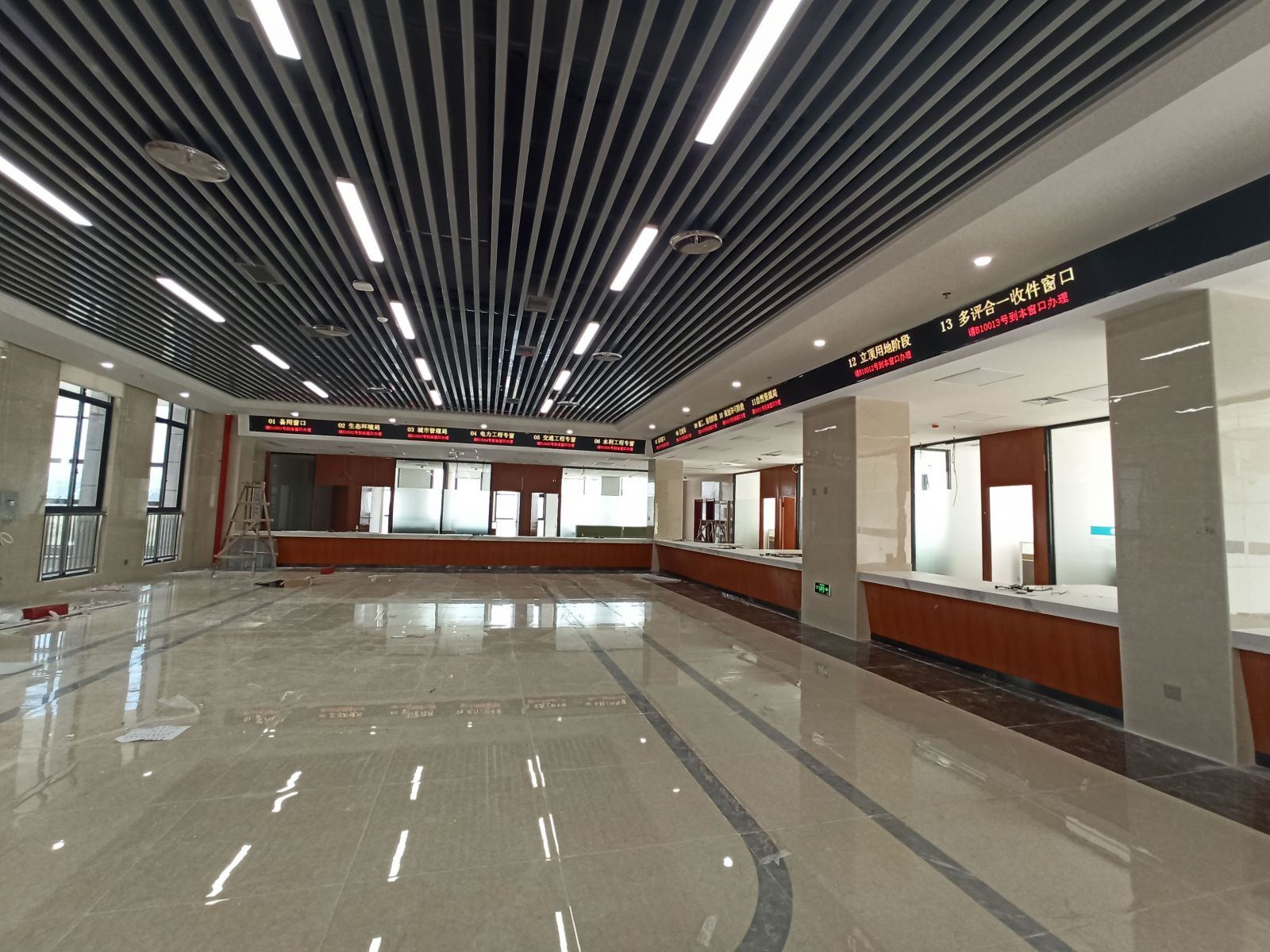 新中心大樓體形呈動感對稱的方正建筑形體,立面采用橫豎線條構圖;外墻采用豎向石材及落地窗裝飾。新中心按綠色建筑“二星級”標準建設,分中心區和配套服務區,中心區主要為政務服務中心大樓;配套服務區建設入口廣場、停車場、綠化景觀等配套設施。     新中心大樓入口處將設兩層挑高10米的高門廳,布置3層高的中庭空間,擁有良好的采光通風及開闊舒適的互動空間。大樓除了設5部電梯外,中庭大廳還設2部自動扶梯。1-5層分別布置為民生保障服務區和便民自助服務區、企業注冊服務區和投資建設服務區、公共資源交易服務區、辦公區、綜合配套區。
