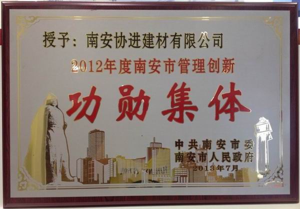 本報訊:8月19日,南安市創新轉型暨金融改革工作推進會在南安人民會堂隆重召開,泉州市市長鄭新聰,南安市委書記黃南康、市長王春金等兩級領導,以及南安市工商界、金融界代表200余人參加會議。會上表彰了2012年度南安市創新獎獲獎單位和個人,部署加快創新轉型、推進金融服務實體經濟綜合改革工作,進一步激發全市的創業創新熱情,推動行業、企業可持續健康發展。南安協進建材有限公司憑借多年來在行業中的創新工作被授予“2012年度南安市管理創新功勛集體”獎,公司總經理王少華應邀參加會議,并代表協進公司上臺接受表彰。